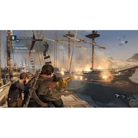 از نظر گیمپلی، Assassin’s Creed Rogue Remastered حس آشنایی خوشایندی دارد، بهخصوص برای کسانی که Black Flag را تجربه کردهاند. هدایت کشتی Morrigan در آبهای سرد و خشن شمالی، بخش مهمی از تجربه بازی است. نبردهای دریایی همچنان هیجانانگیز هستند، اما شرایط محیطی سختتر شده و مدیریت مسیر حرکت، زمان حمله و استفاده از تجهیزات اهمیت بیشتری پیدا کرده است. حضور یخهای شناور و طوفانهای ناگهانی باعث میشود هر سفر دریایی غیرقابل پیشبینی باشد.